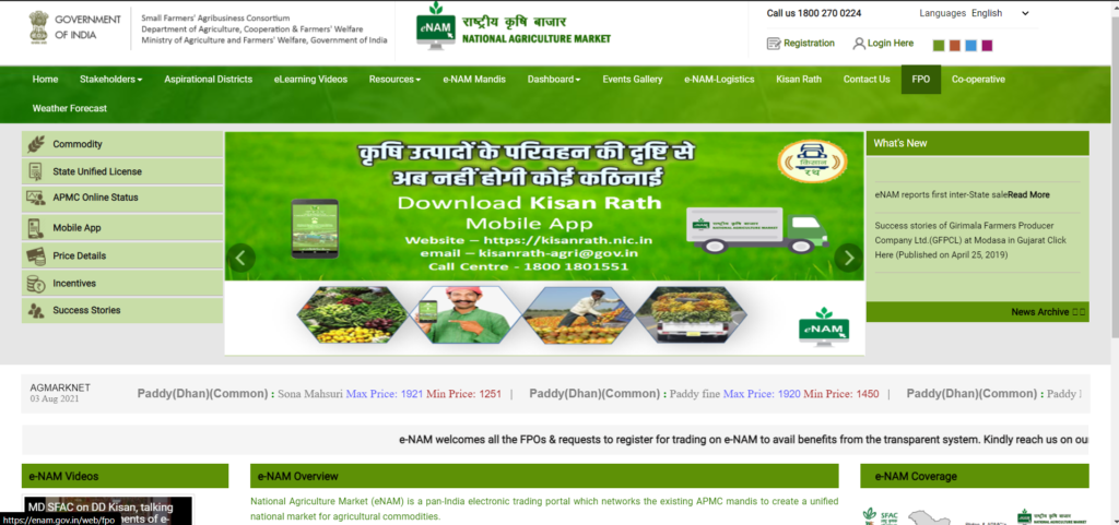 इस योजना का आवेदन करने के लिए आप सरकार की official website – enam.gov.in पर visit कर सकते है और ऑनलाइन आवेदन कर सकते है। अब official website खुल जाएगी इसके मैं tab में ही आपको FPO का ऑप्शन दिखेगा उसको क्लिक करेंगे।